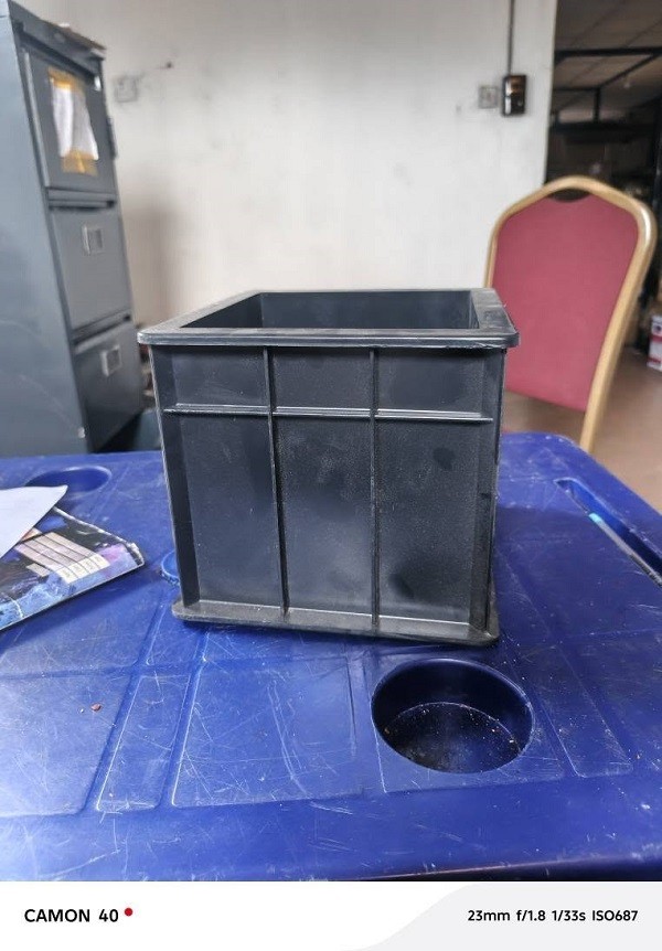 A reusable plastic mould used to cast 150mm x 150mm concrete cubes for compressive strength testing in construction.