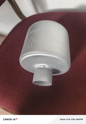 Specs: Inlet/Outlet: 1.5". Body: 8" diameter, 10.3" length. Overall: 18.2" long.
