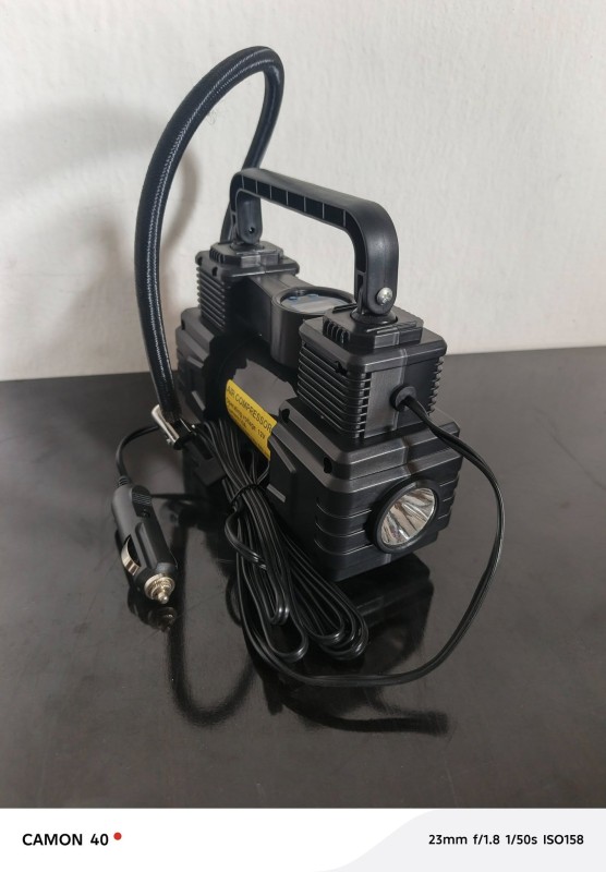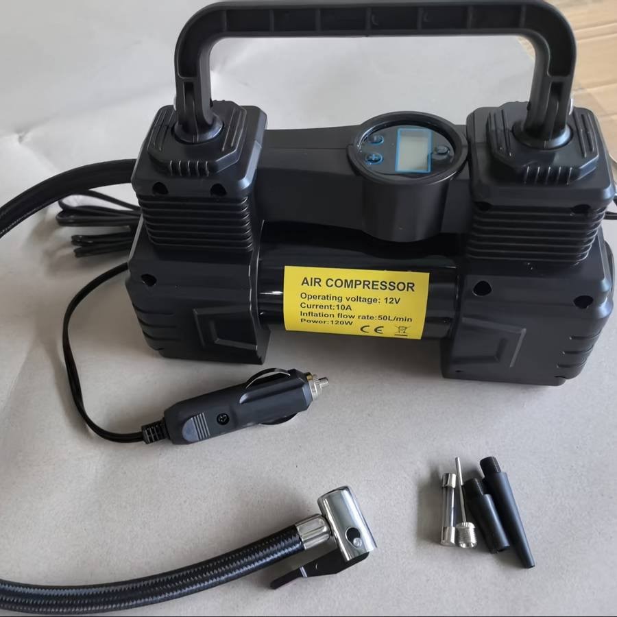 The Portable Digital Display Tire Inflator is a compact, high-performance air compressor designed for fast and accurate tire inflation. Powered via a 12V car cigarette lighter, it delivers up to 150 PSI with a strong 50L/min airflow. The built-in digital display ensures precise pressure monitoring, while the integrated LED light supports safe nighttime use. Simple plug-and-play operation makes it ideal for emergency and routine vehicle maintenance.