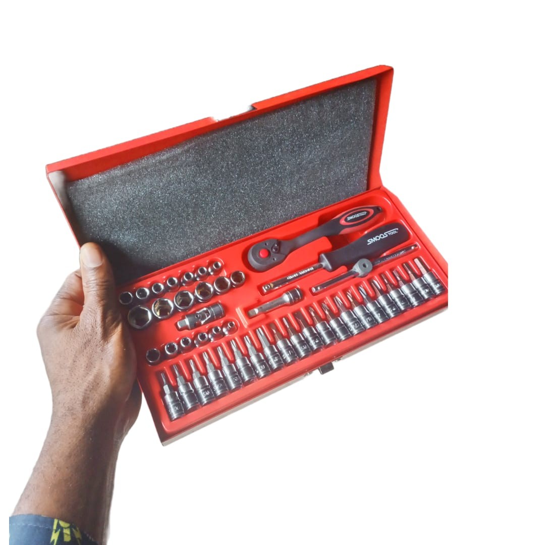 The Lystus provides smoos 45-Piece 1/4 Sq. Drive Socket Set is a comprehensive and versatile toolkit designed to meet a wide range of mechanical and DIY needs. This set includes a variety of sockets, bit sockets, and essential accessories, all housed in a convenient carry case for easy organization and transport.