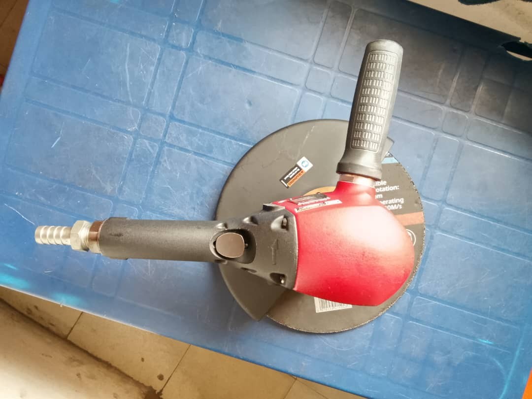 The Desoutter 9-inch air angle grinder Type KL365B9 is a professional-grade pneumatic grinding tool designed for heavy-duty industrial applications. Built for durability and consistent performance, it delivers smooth material removal while maintaining operator control. Its robust housing and ergonomic side handle ensure stability during prolonged use, making it suitable for demanding workshop and site conditions.
